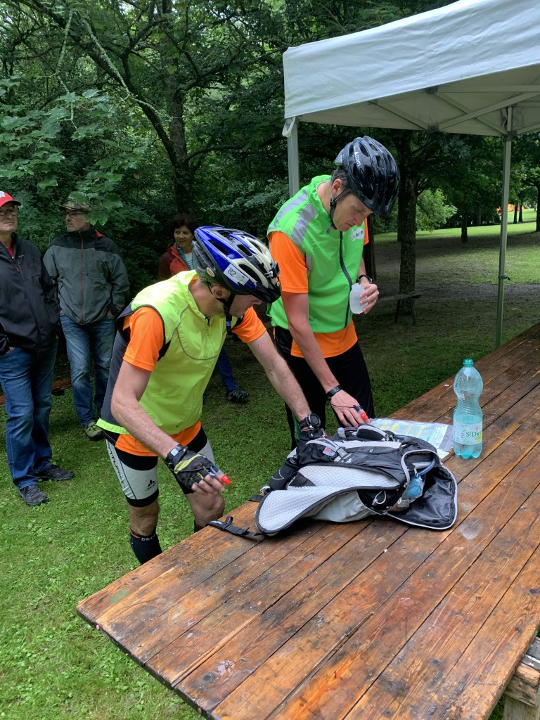 Le premier stop de 20 min est le bienvenu pour se ravitailler et souffler un peu. Stratégiquement, on va au plus vite sur les deux sections 07 à VTT puis en trail pour disposer de temps pour la section CO suivante en forêt. On engrange 15 balises sur cette section 08, seules 3 équipes ont fait mieux, ça semblait un bon choix vu que les balises s’accumulaient plus vite que sur les sections précédentes. On enchaîne sur un VTT’O avant le deuxième STOP de 20 min.