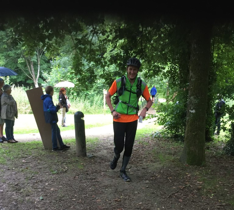 Les 7,5km de trail qui suivent sont très éprouvants. On descend au bord d’une rivière, on remonte, puis on redescend… Cela plusieurs fois, parfois dans des devers, dans les ronces, sur les fesses, un vrai parcours du combattant. Pas de doute, ce dimanche, on est bien dans l’aventure !!!